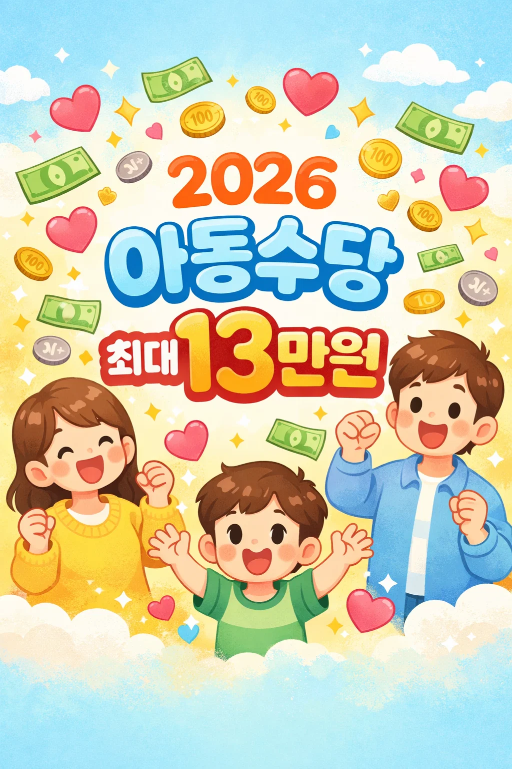 2026 아동수당 총정리! 만 9세까지 확대·지역별 최대 13만원 받는 대상·신청 방법·지급일 완벽 정리. 놓치면 손해! 지금 확인하세요. 육아 비용이 날로